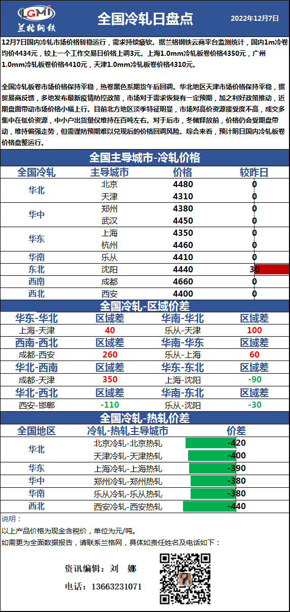 发表日期:2022/12/7 16:50:21 兰格钢铁