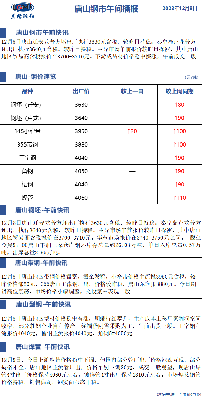 12月8日兰格唐山钢市午间播报