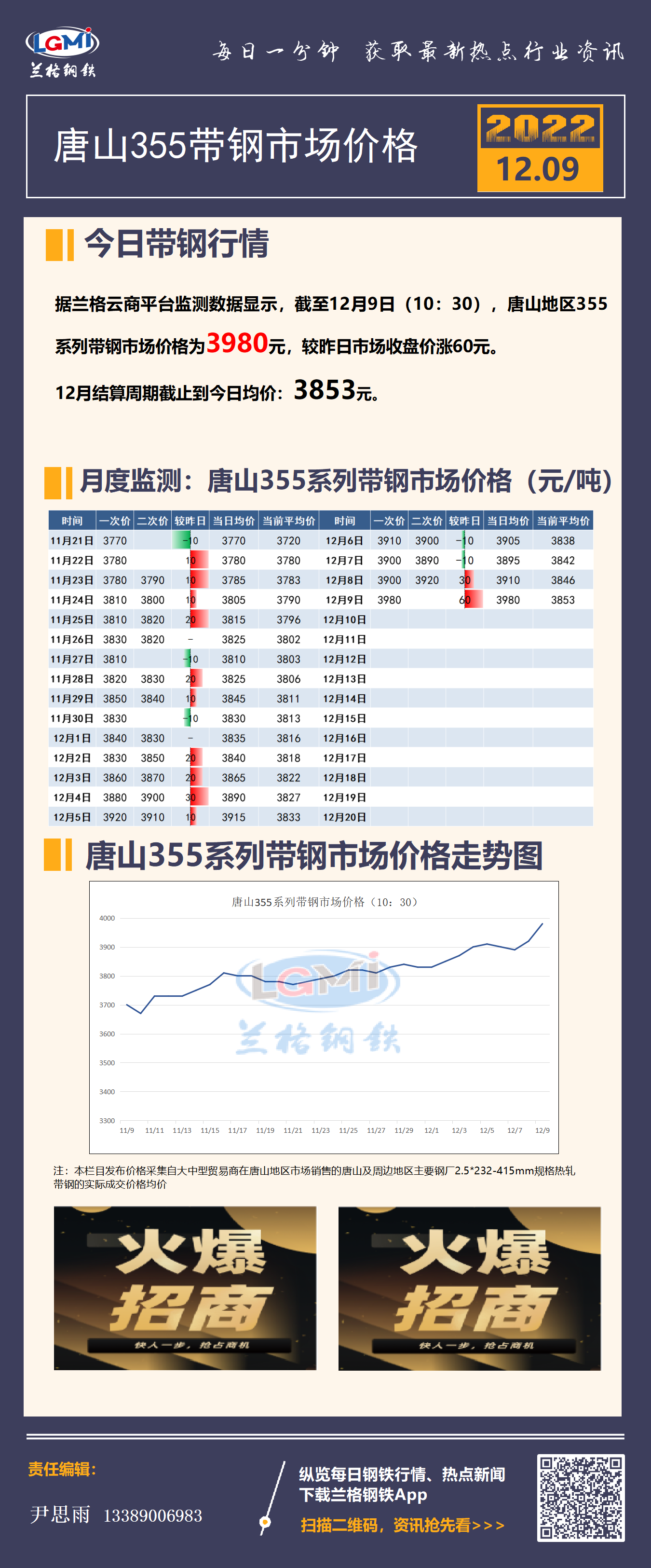 - 12月9日(10:30)唐山355系带钢市场价格2022/12/9