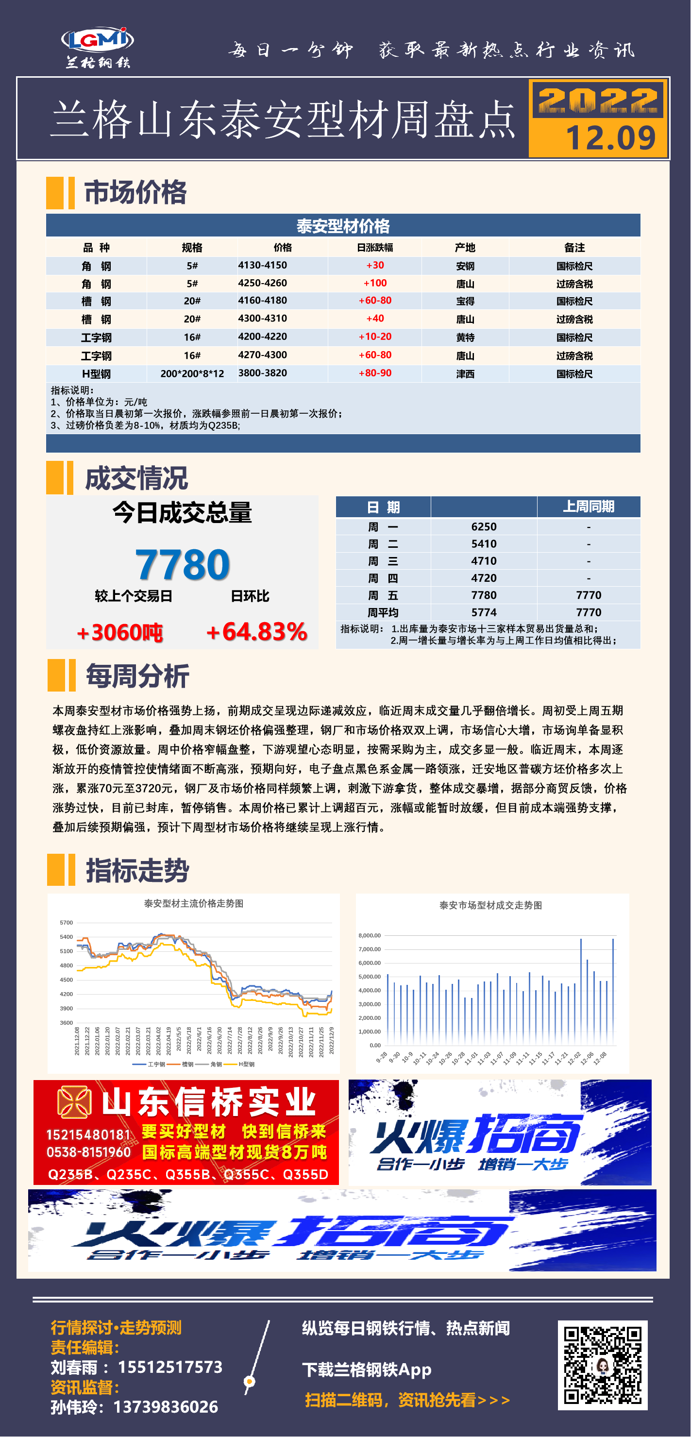 - 泰安型材周盘点:成本端强势支撑 价格涨势迅猛 交投备显积极2022/12/9