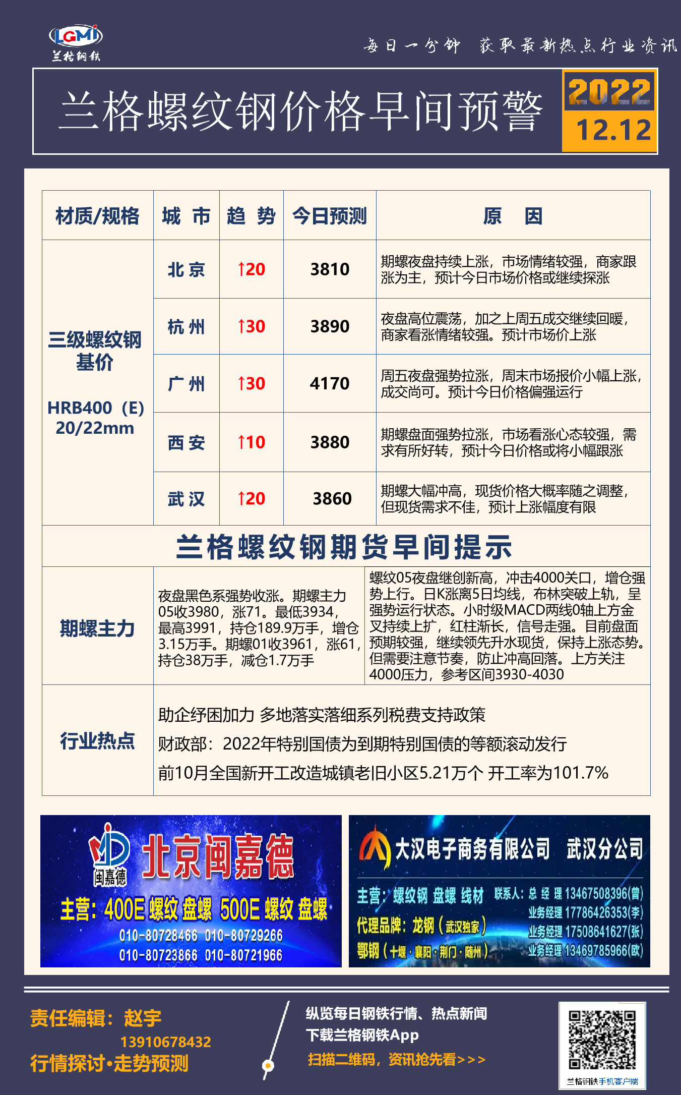 - 12月12日山西晋南钢铁建筑钢材出厂价格平稳2022/12/12