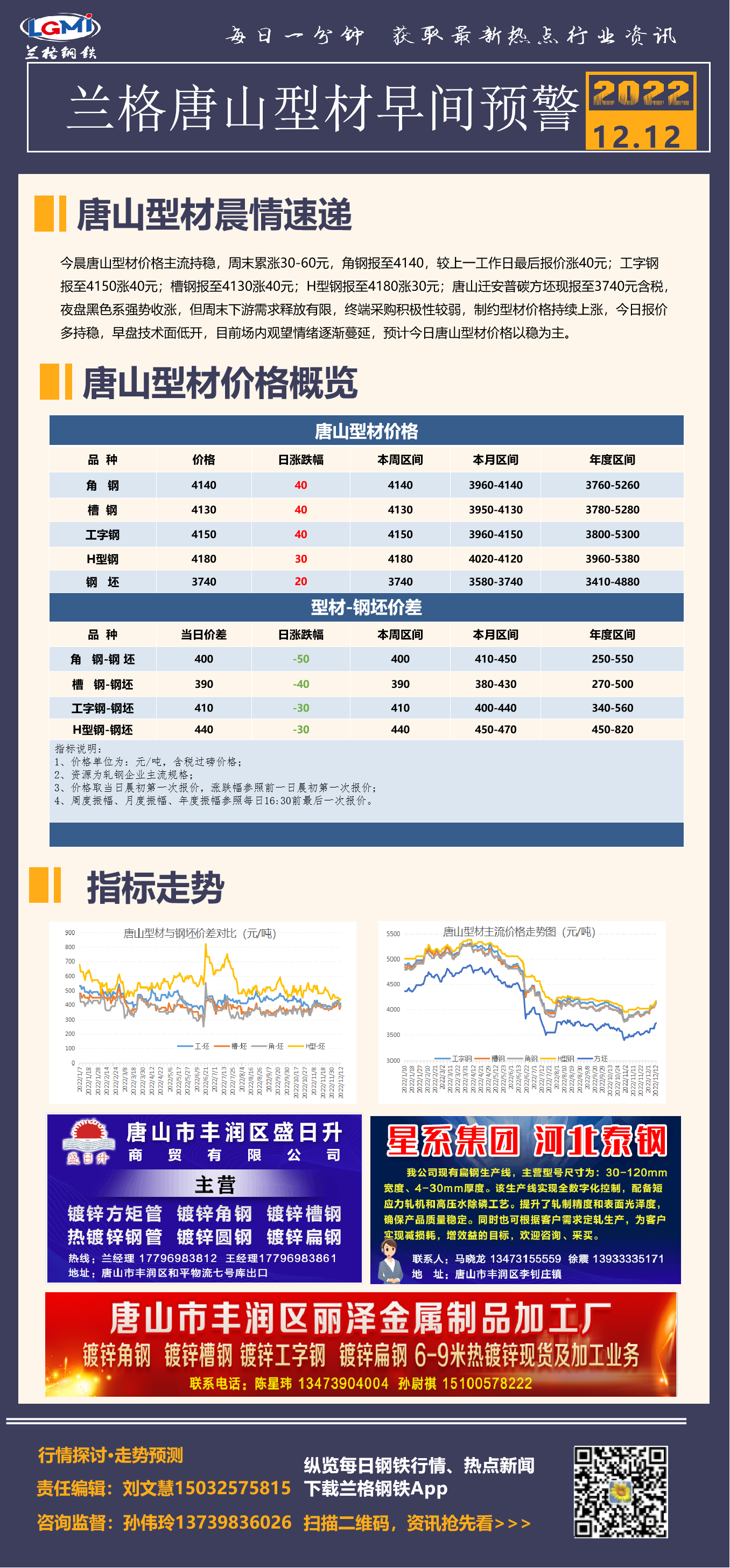 - 12月12日兰格唐山型材早间预警2022/12/12