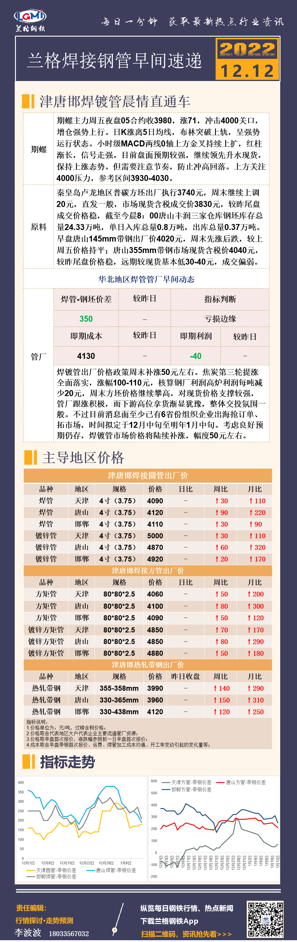 12月12日(9:20)兰格津唐邯焊接钢管早间速递