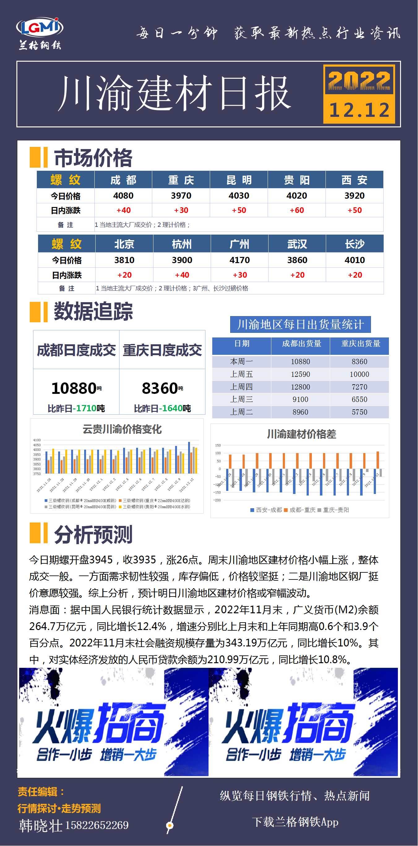 - 川渝地区建材价格小幅上涨 成交一般2022/12/12