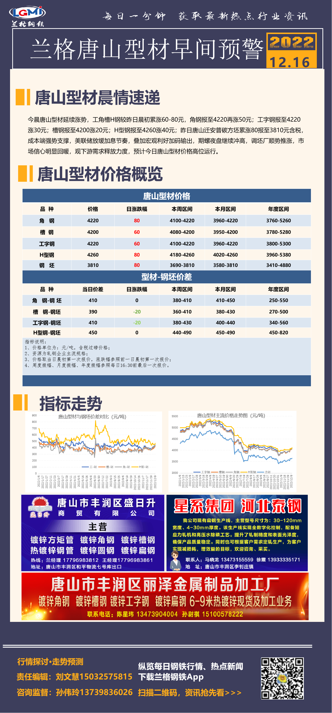 - 12月16日兰格唐山型材早间预警2022/12/16