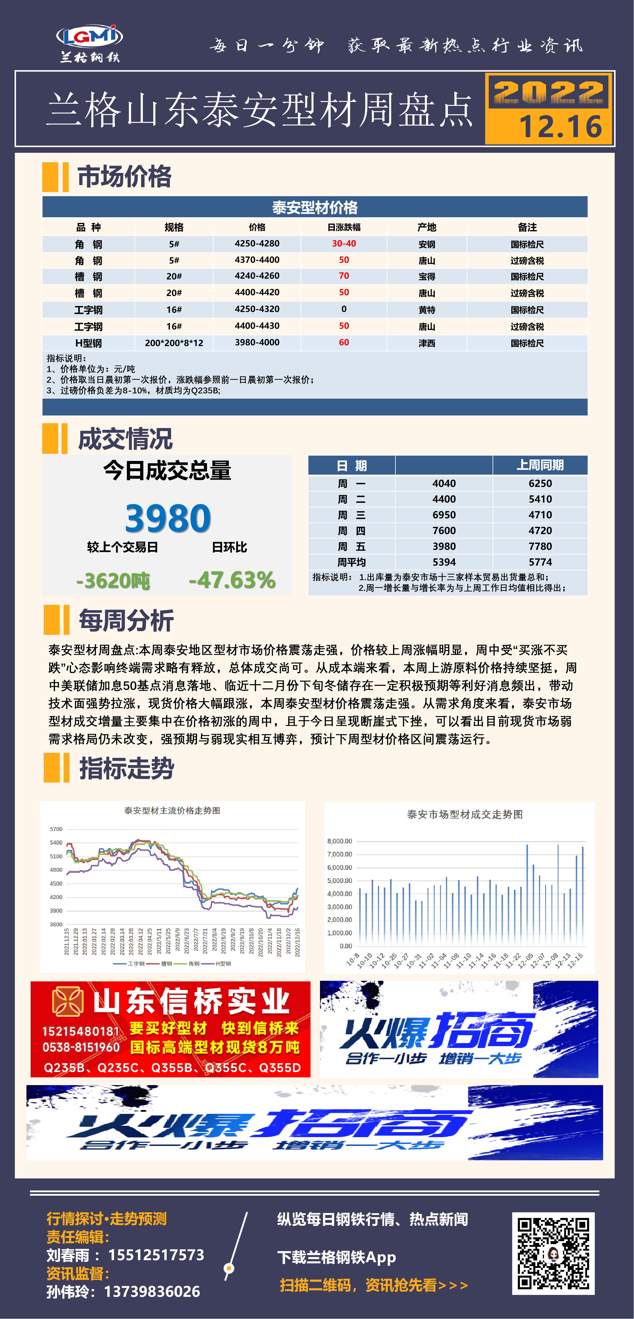 - 泰安型材周盘点:价格宽幅上涨 需求集中释放 出货尚可2022/12/16