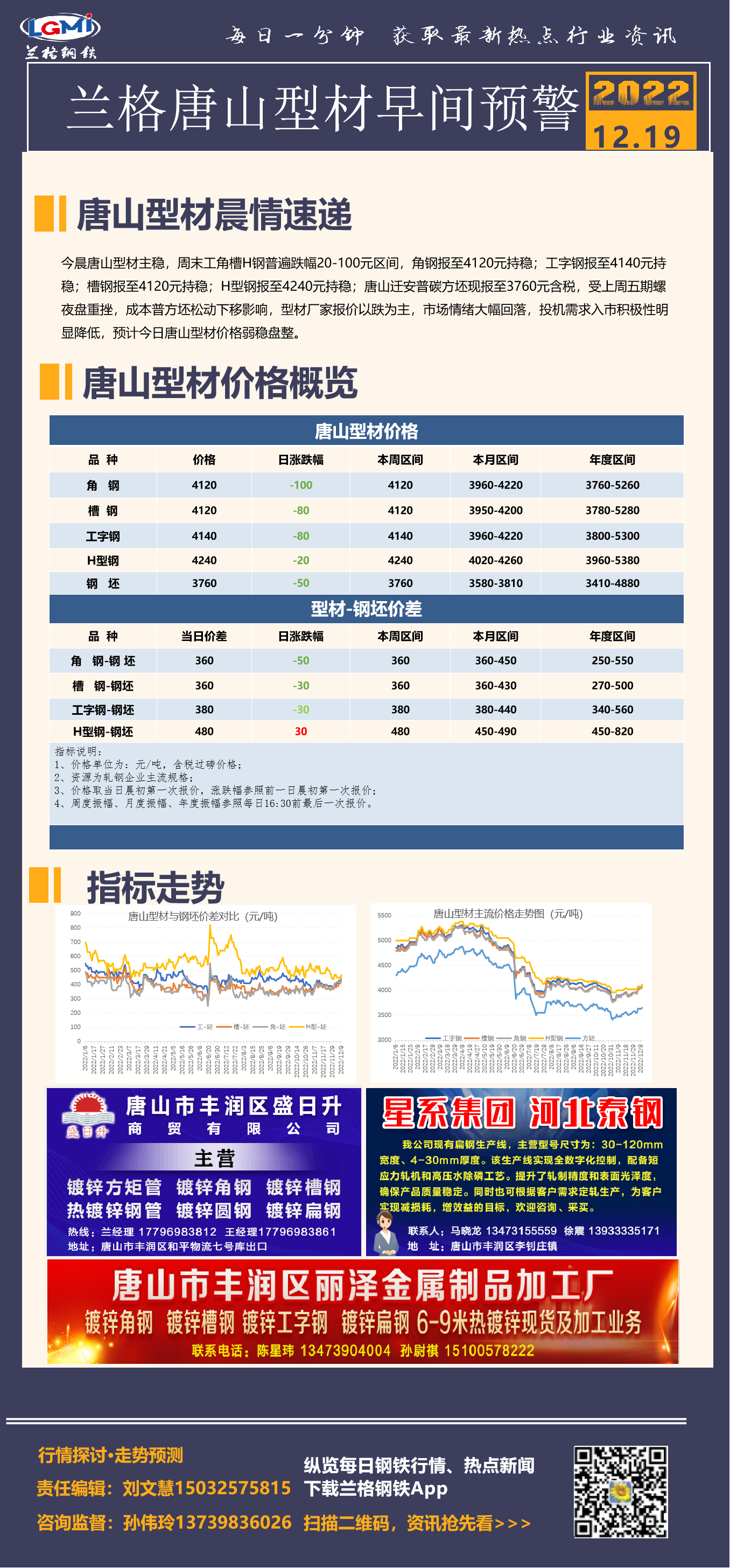 - 12月19日兰格唐山型材早间预警2022/12/19