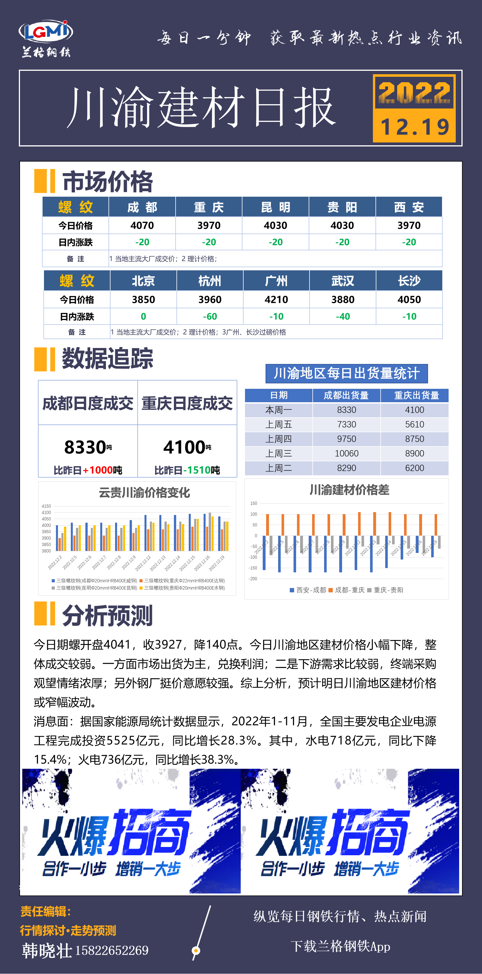 - 综述:19日国内建材价格小幅下降2022/12/19