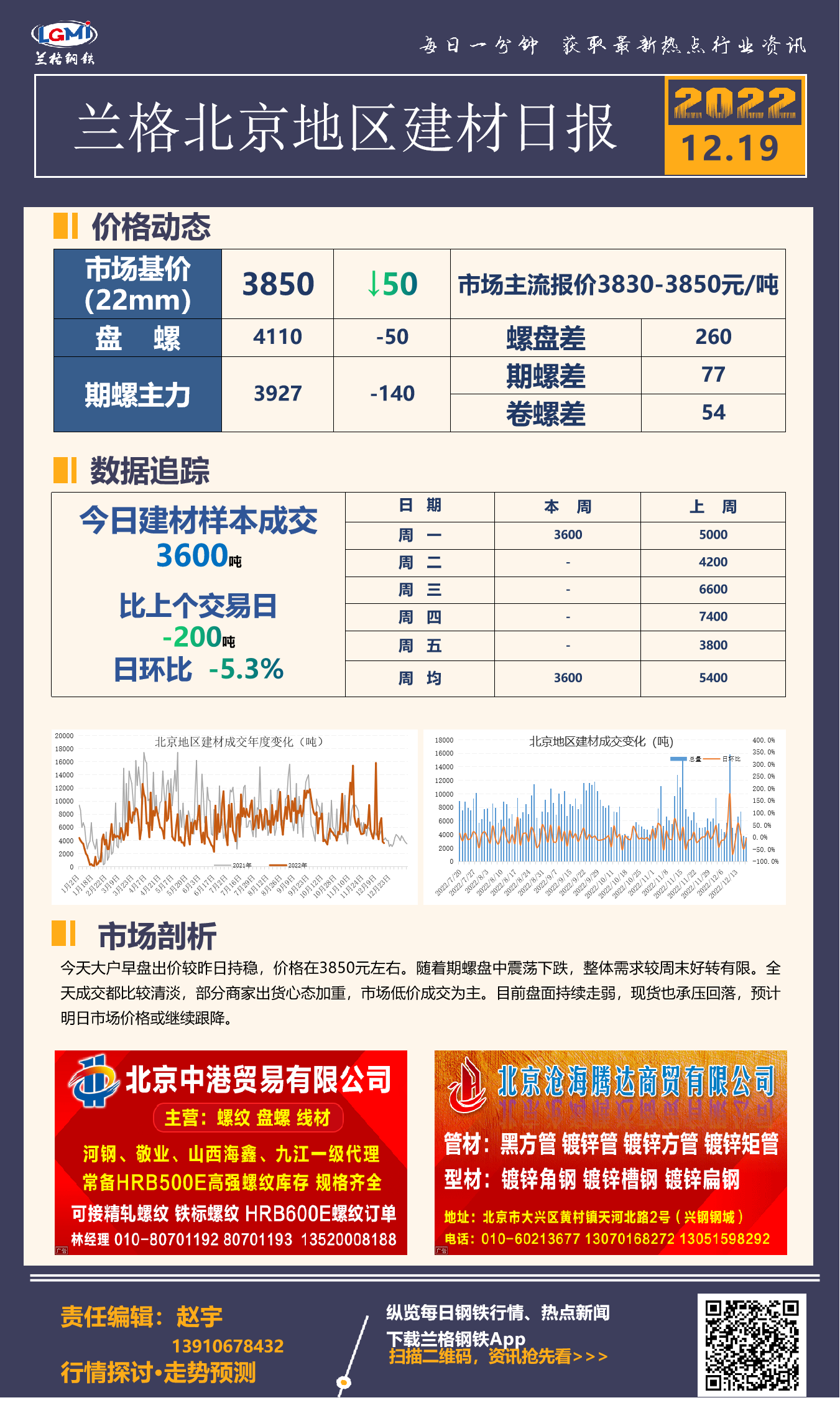 - 兰格视点:12月19钢铁行业概览2022/12/19