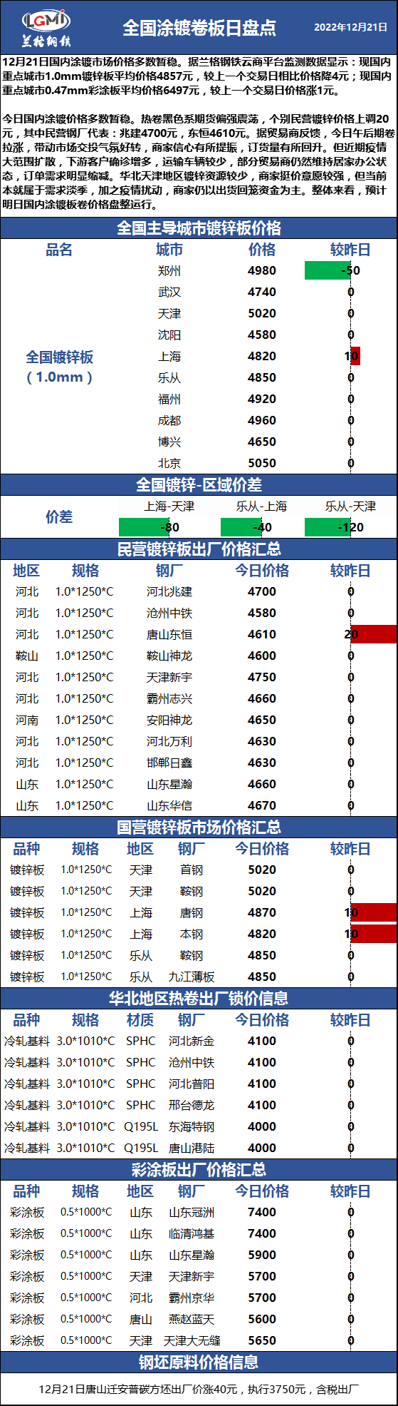 - 12月21日全国钢厂建筑钢材调价汇总2022/12/21