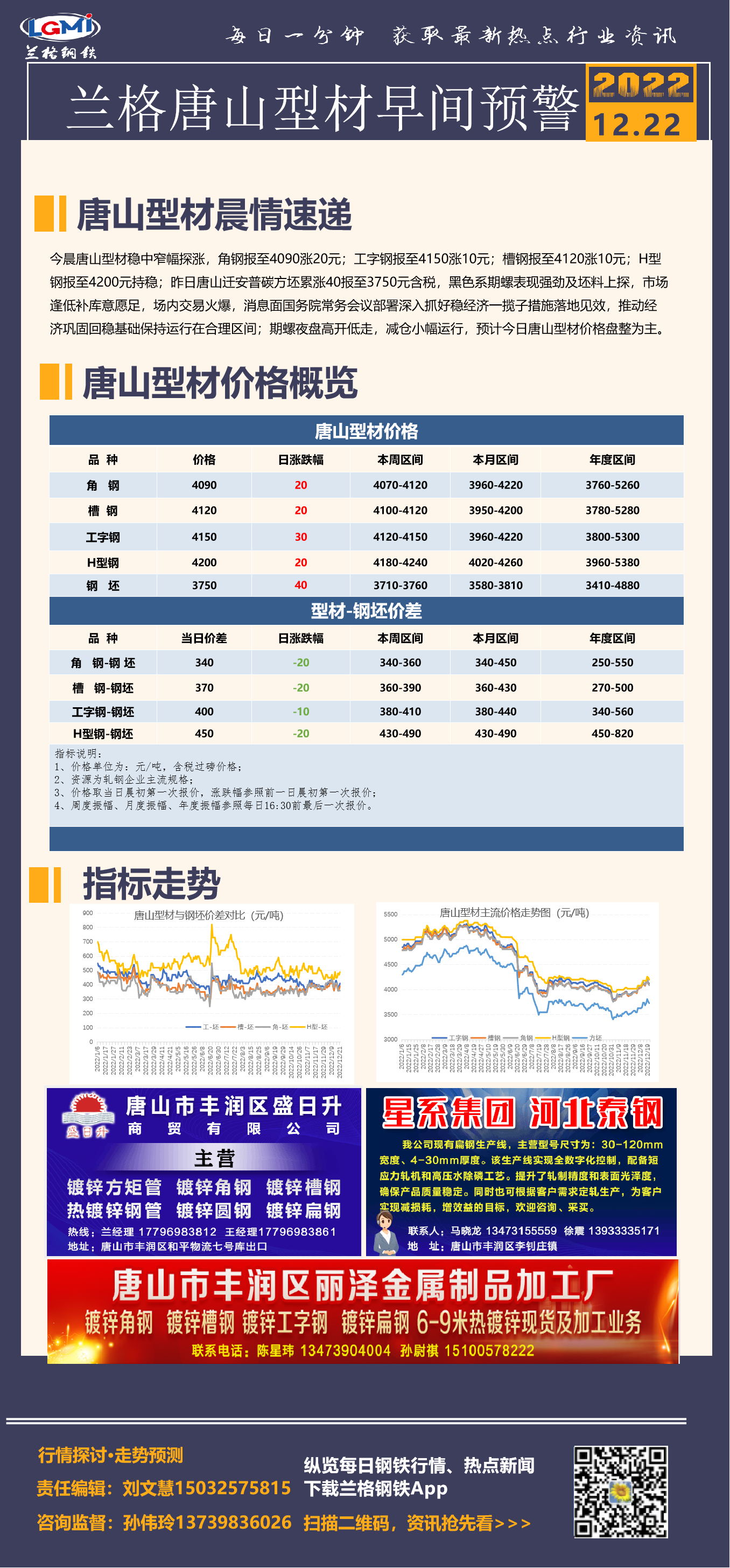 - 唐山型材日盘点:价格涨跌互现 轧钢企业交投氛围火热2022/12/21