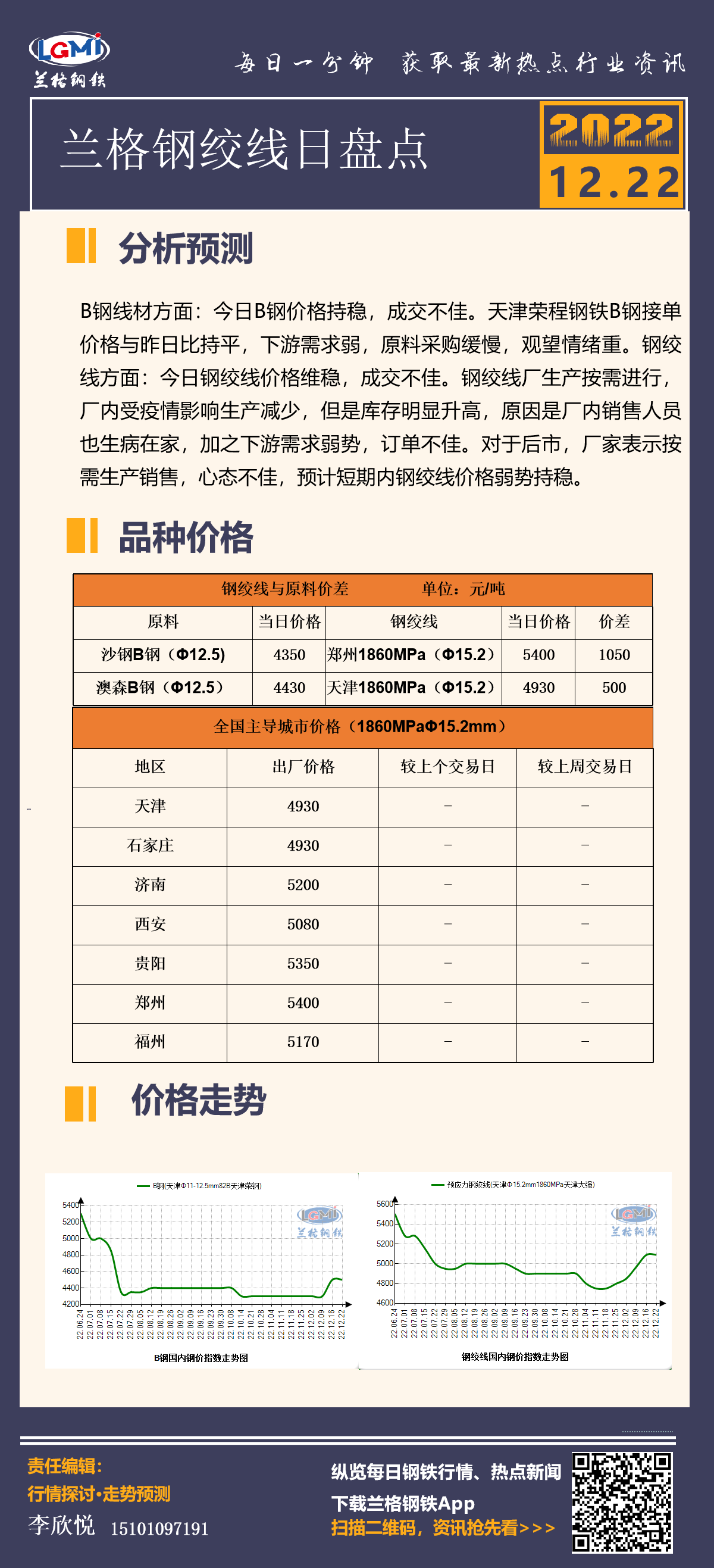 - 快讯:12月22日天津荣程B钢线材接单价格稳2022/12/22