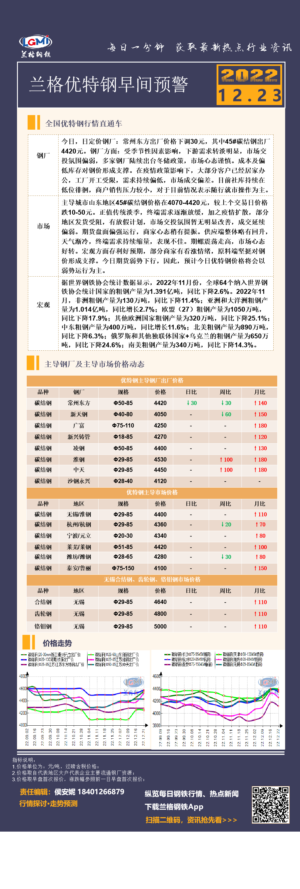 12月23日(9:30)兰格优特钢早间预警