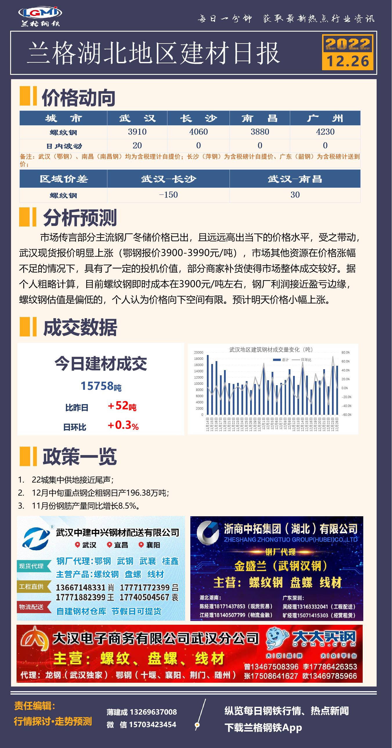 发表日期:2022/12/26 17:28:43 兰格钢铁