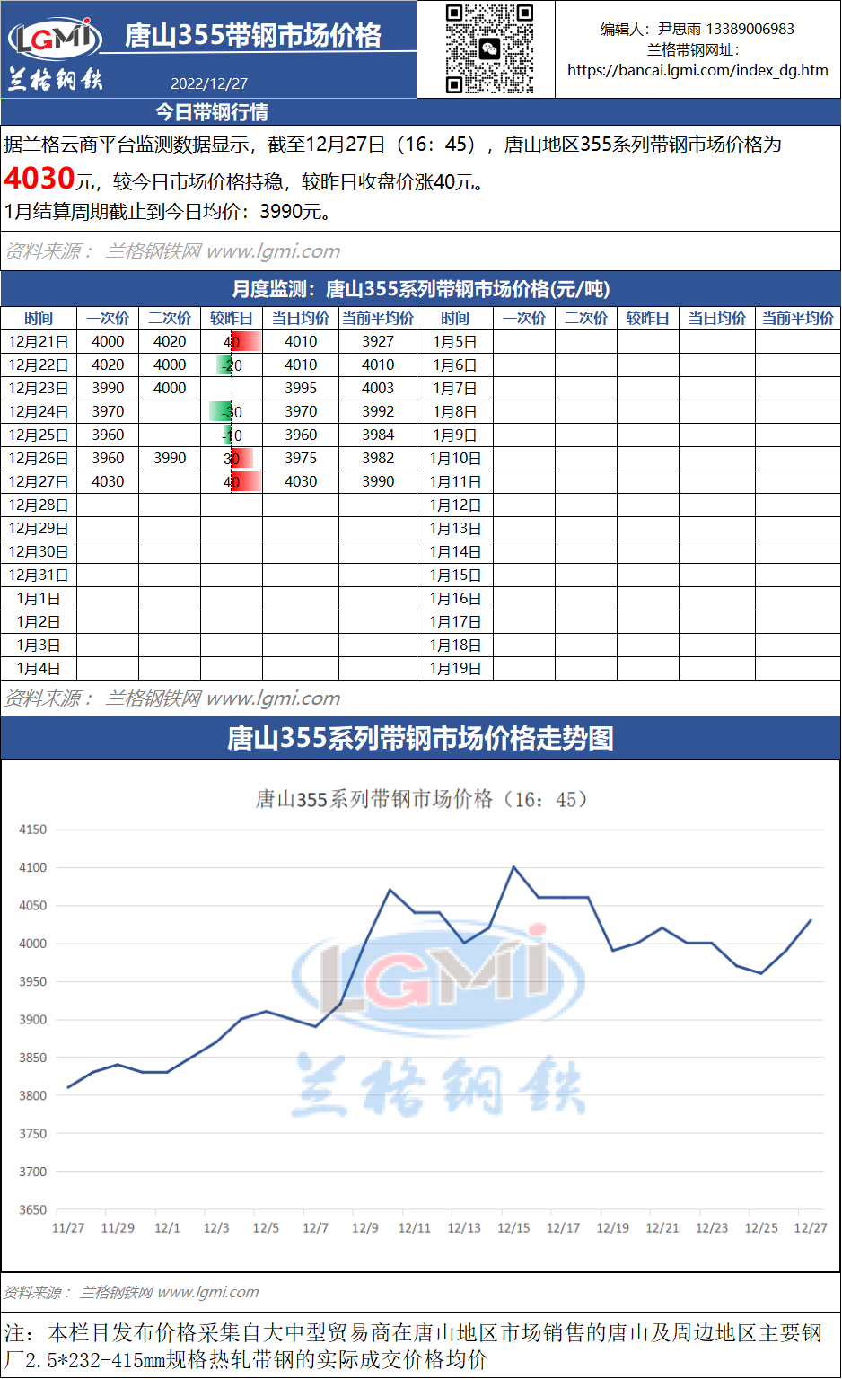 - 12月27日(16:45)唐山355系带钢市场价格2022/12/27