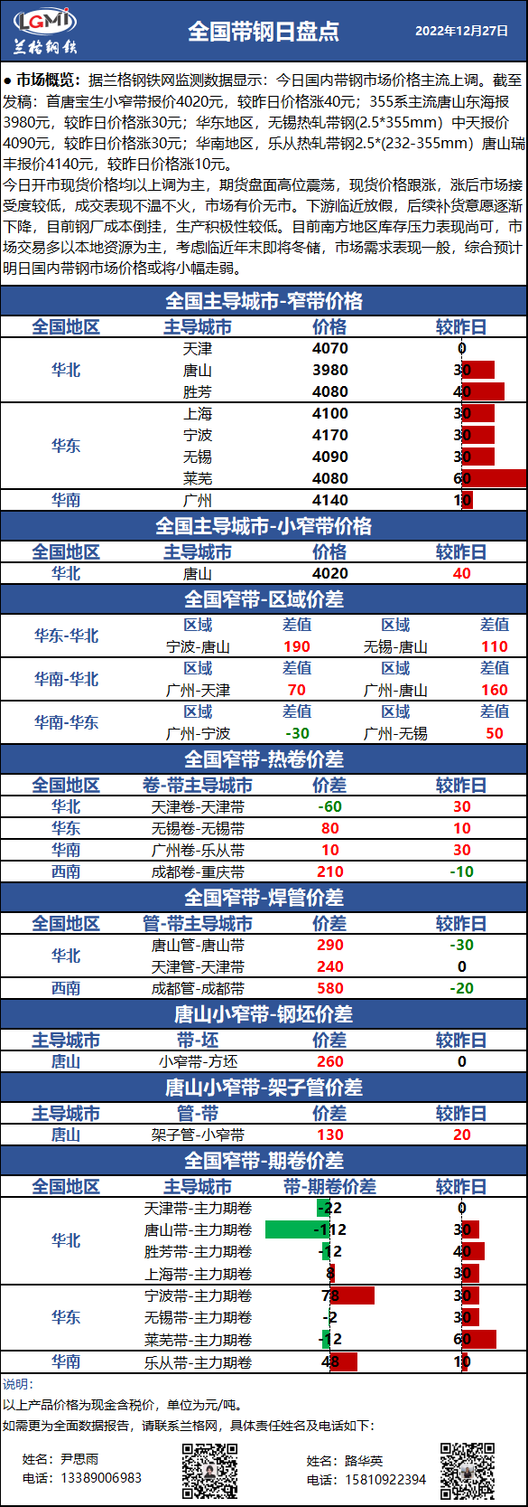- 兰格带钢日盘点:国内带钢市场价格上调 预计明日价格下调2022/12/27