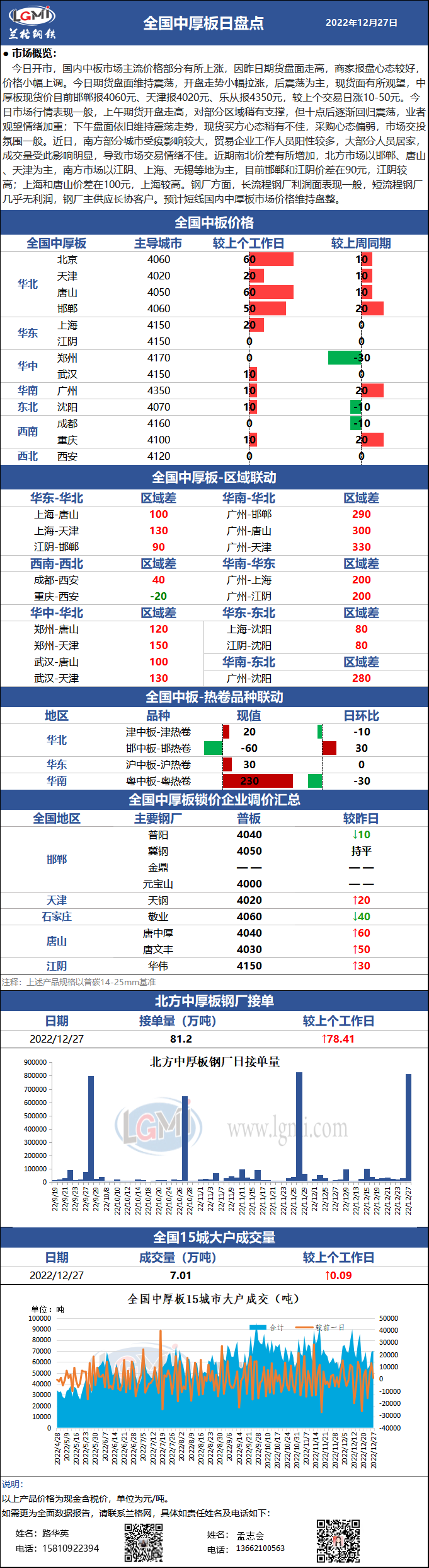 - 兰格中厚板日盘点:市场价格部分小涨 成交气氛略有不及2022/12/27
