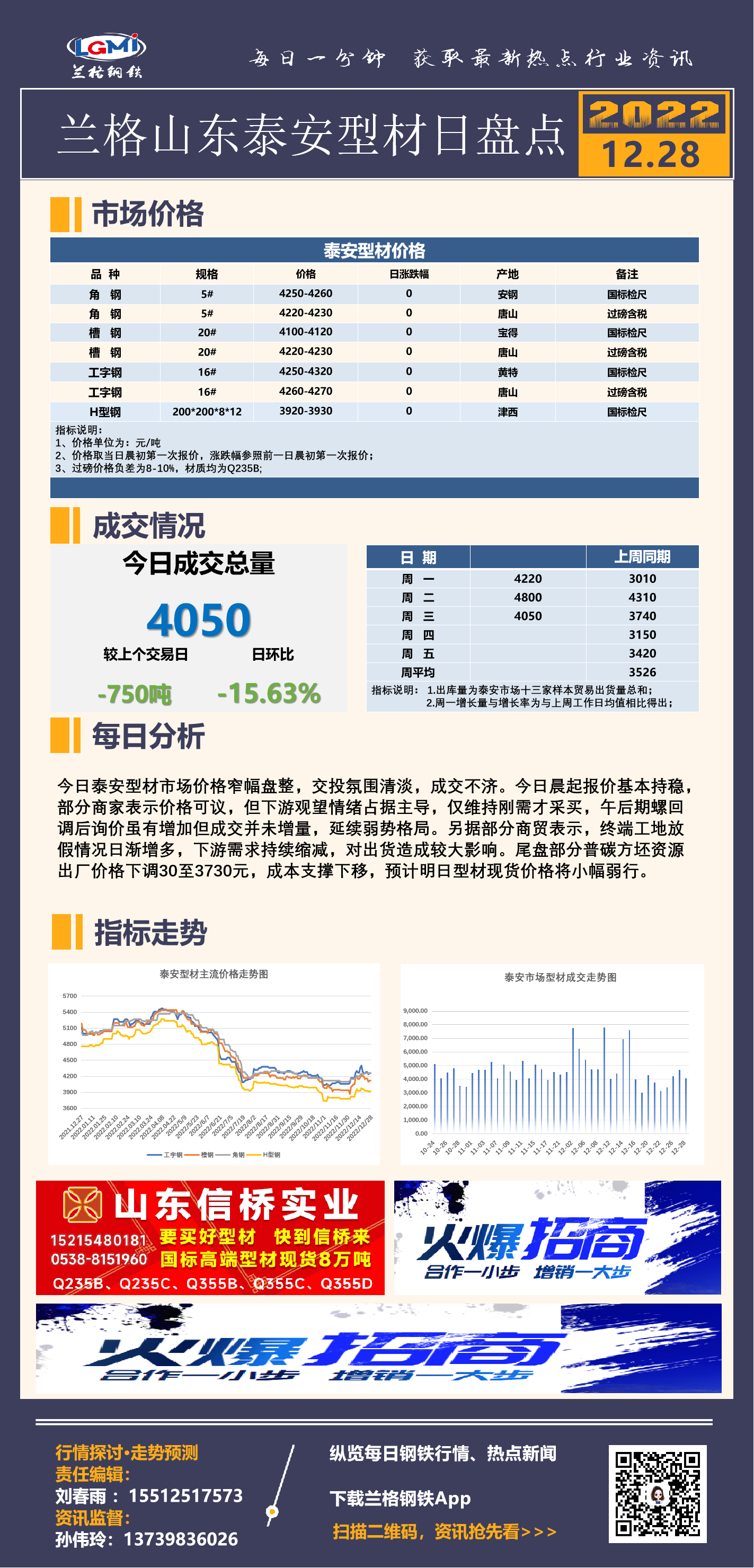- 泰安型材日盘点:价格窄幅调整 需求缩减 成交缩水2022/12/28