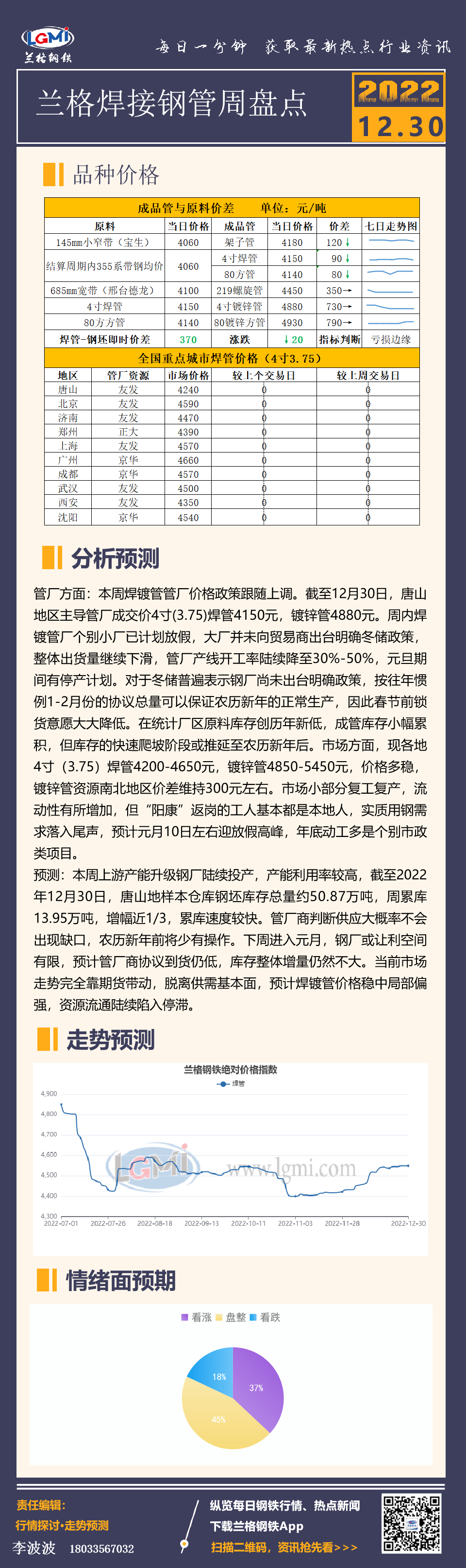 - 兰格焊管周盘点:冬储政策未出 管厂商供需继续减弱2022/12/30