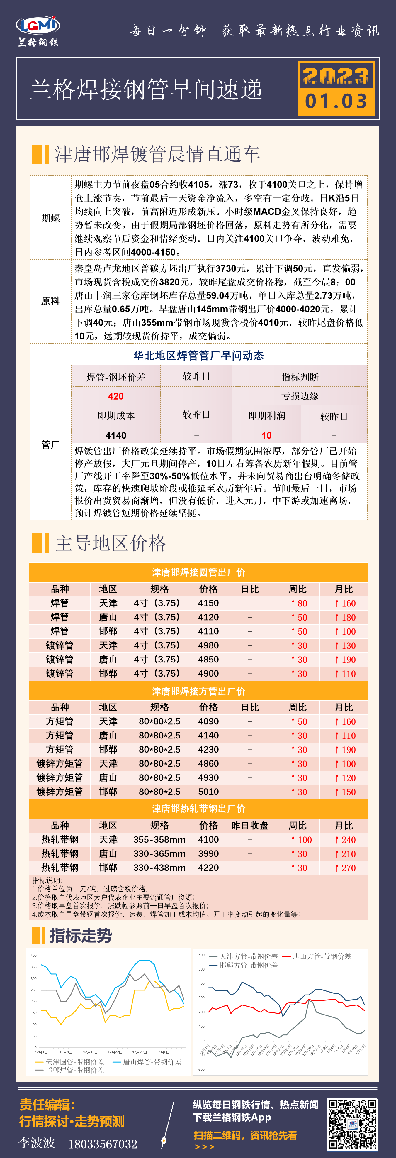 1月3日(9:20)兰格津唐邯焊接钢管早间速递
