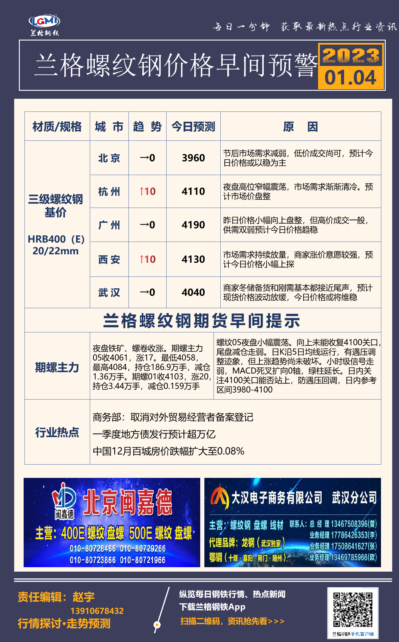 1月4日兰格螺纹钢价格早间预警