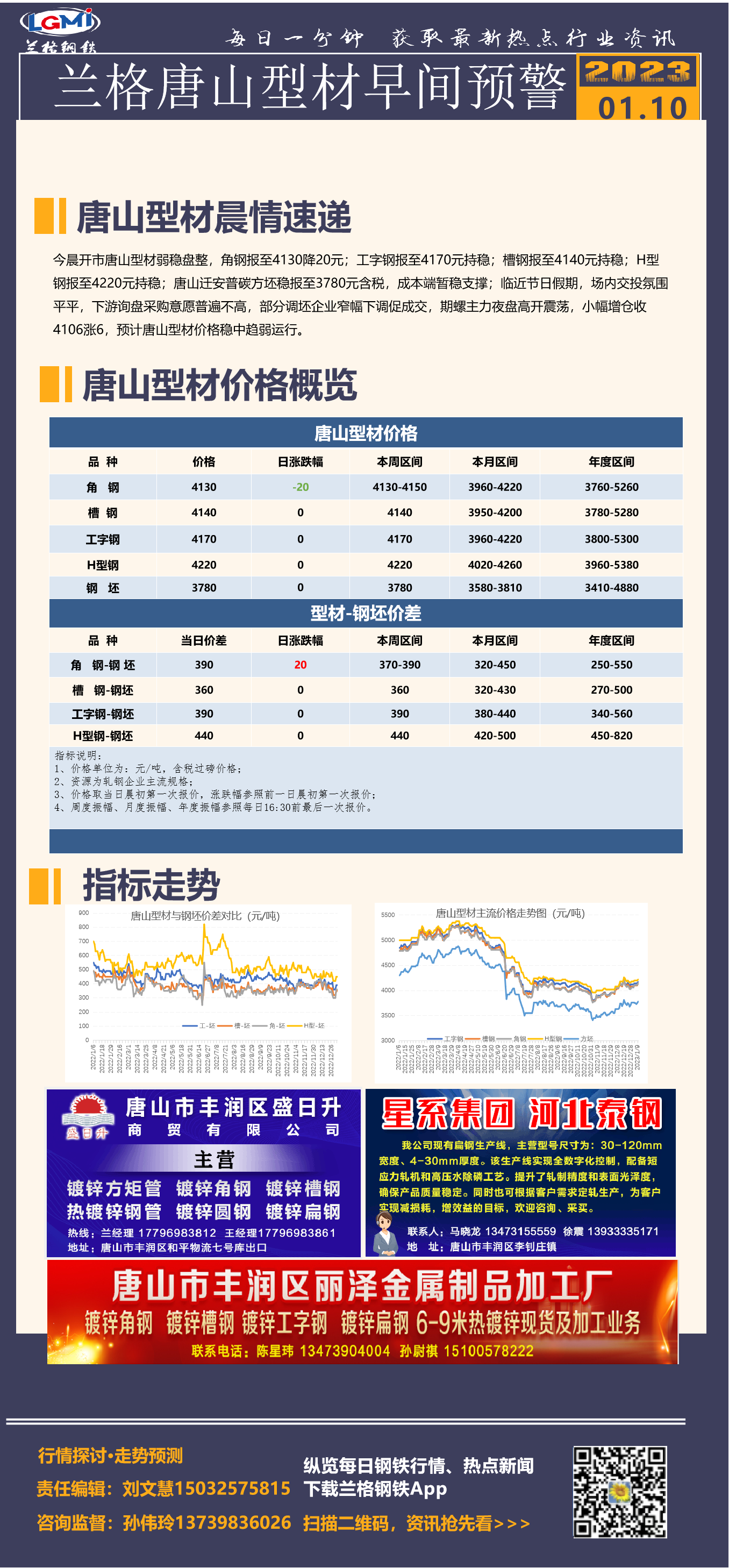 - 1月10日兰格唐山型材早间预警2023/1/10