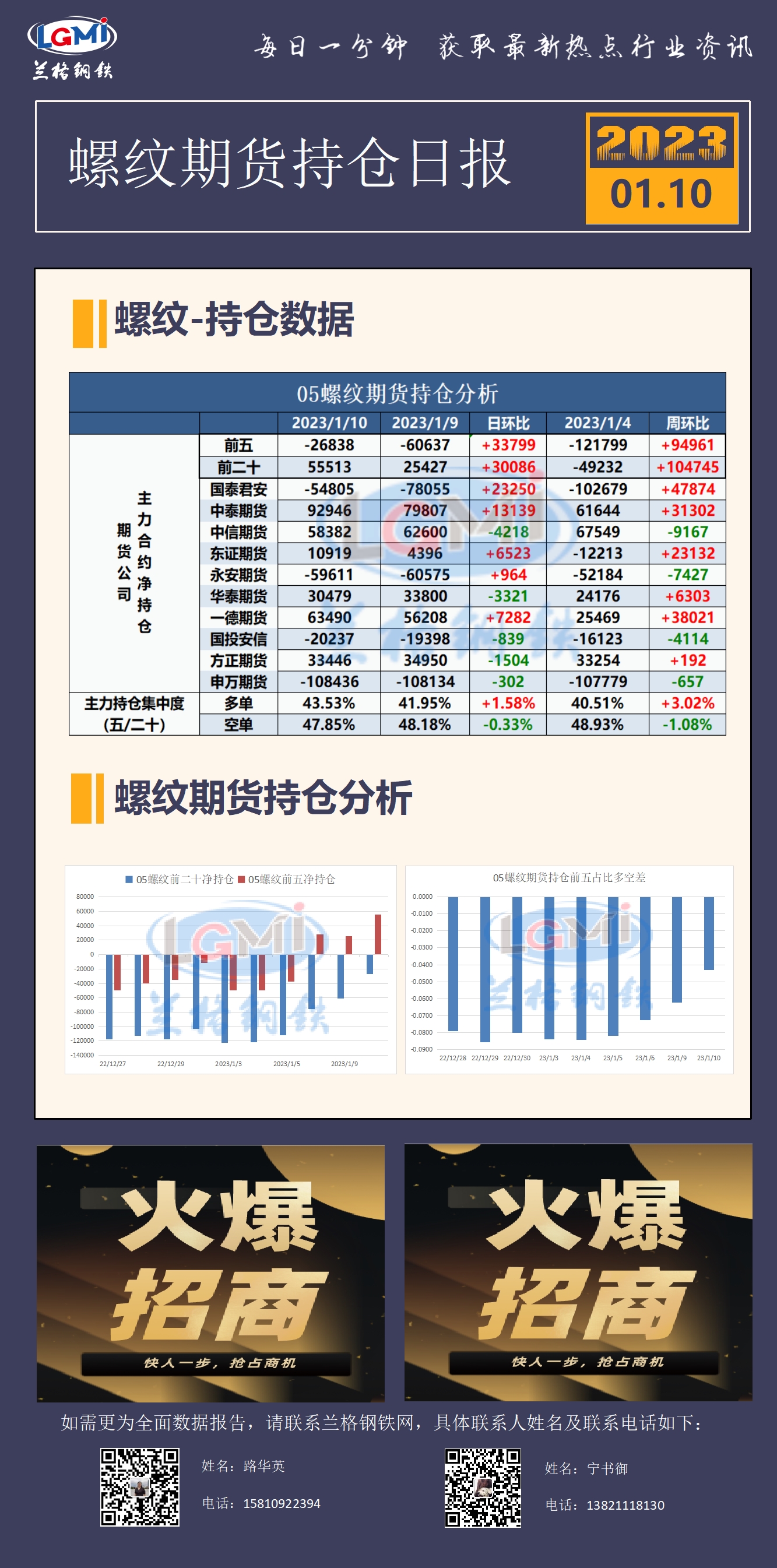 - 1月10日螺纹期货持仓日报2023/1/10