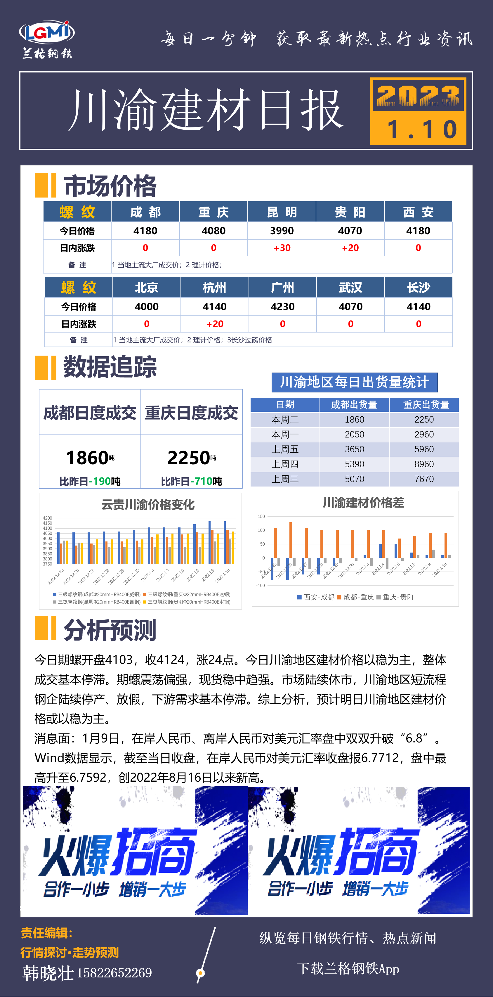 - 快讯:10日贵阳建材成交惨淡2023/1/10