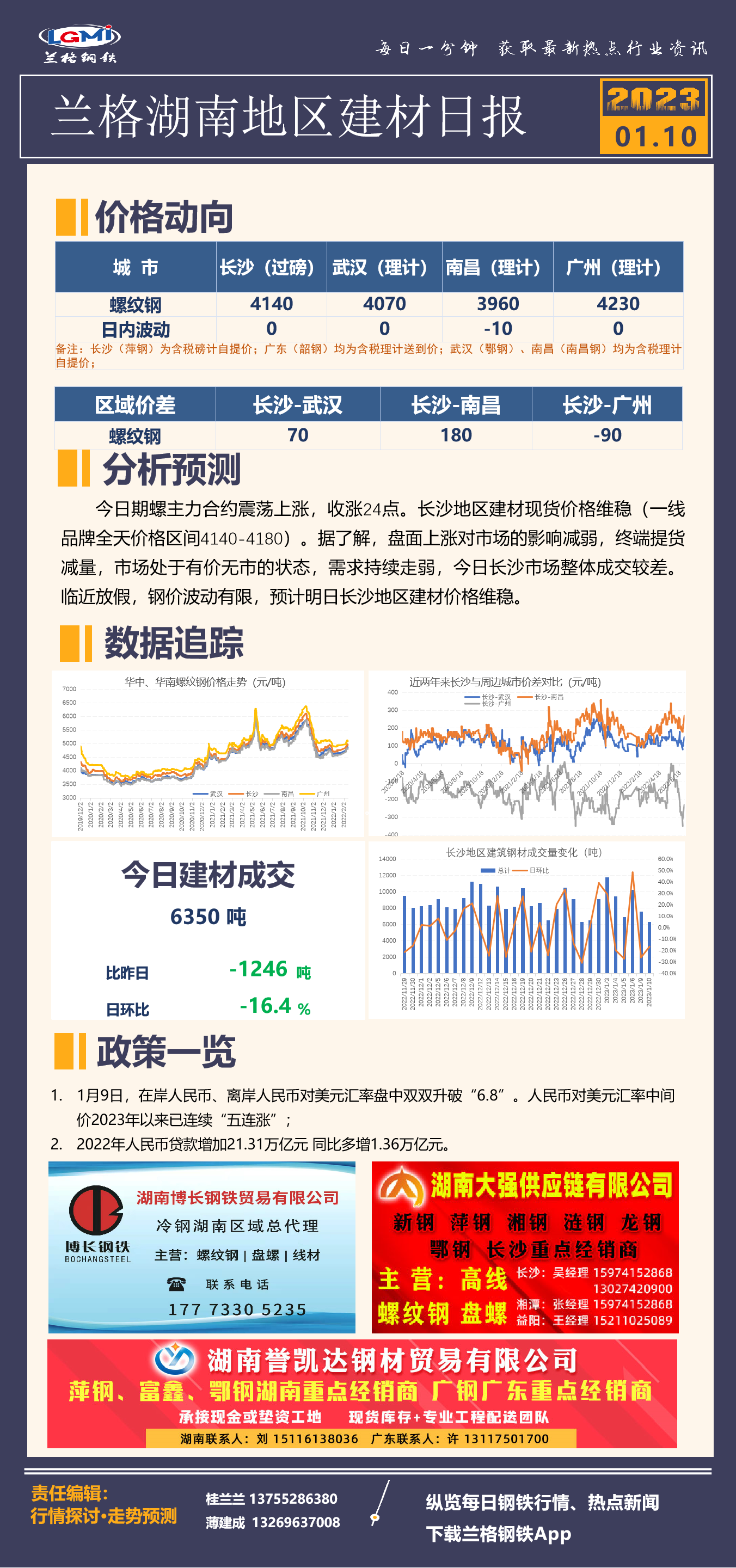 - 长沙建筑钢材库存统计(01.06)2023/1/6