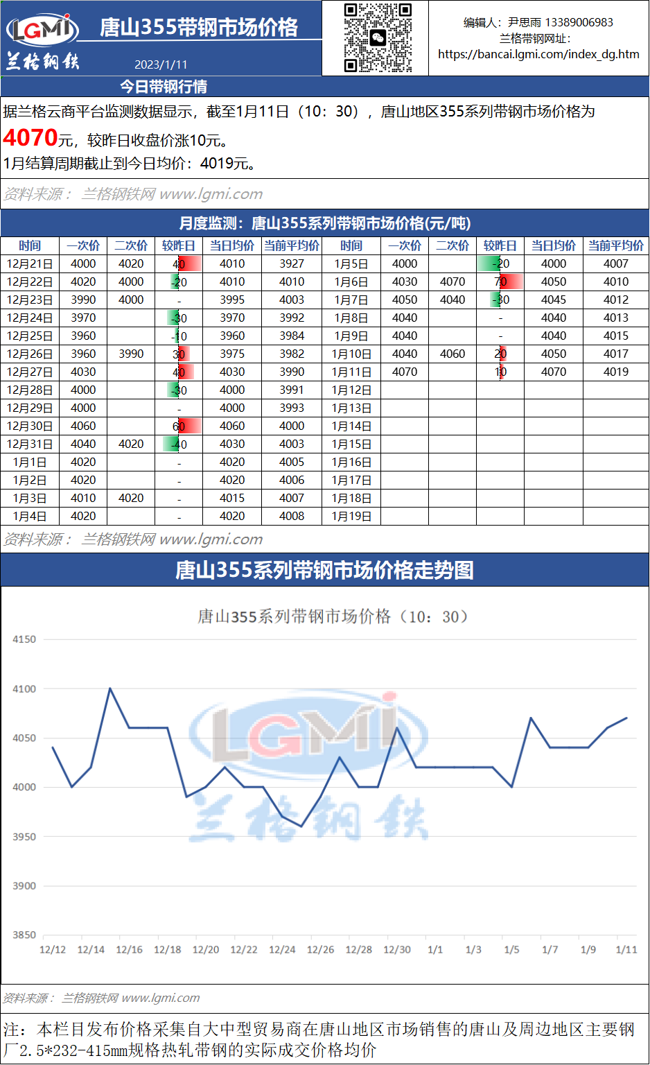 - 1月11日(10:30)唐山355系带钢市场价格2023/1/11