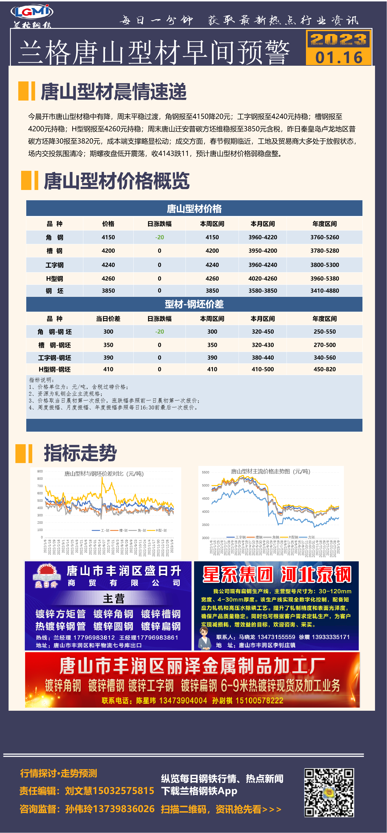 - 1月16日兰格唐山型材早间预警2023/1/16