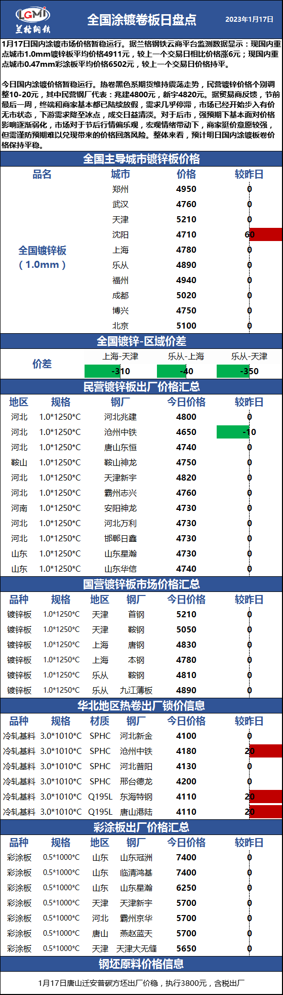 兰格涂镀板卷日盘点:涂镀价格暂稳运行 市场需求基本停滞