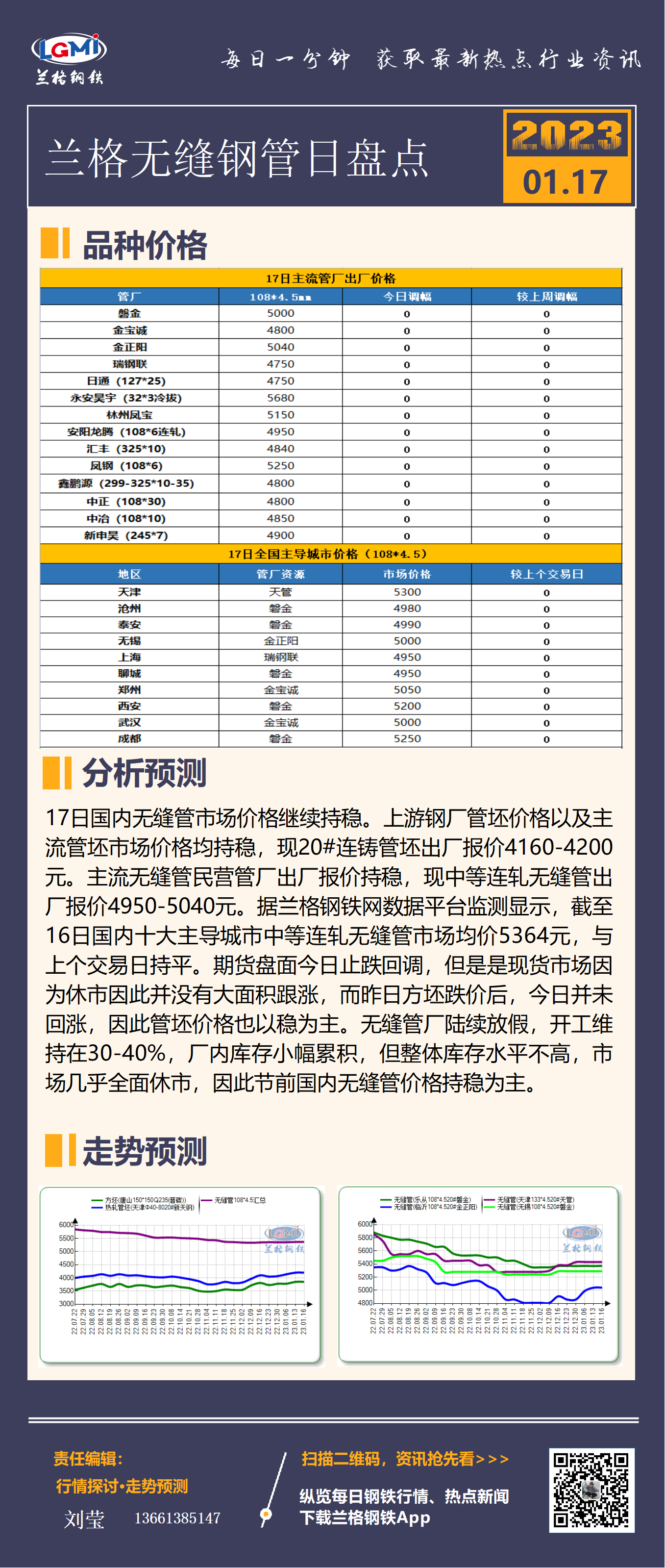 兰格无缝管日盘点:盘面再次上扬 无缝管市场观望
