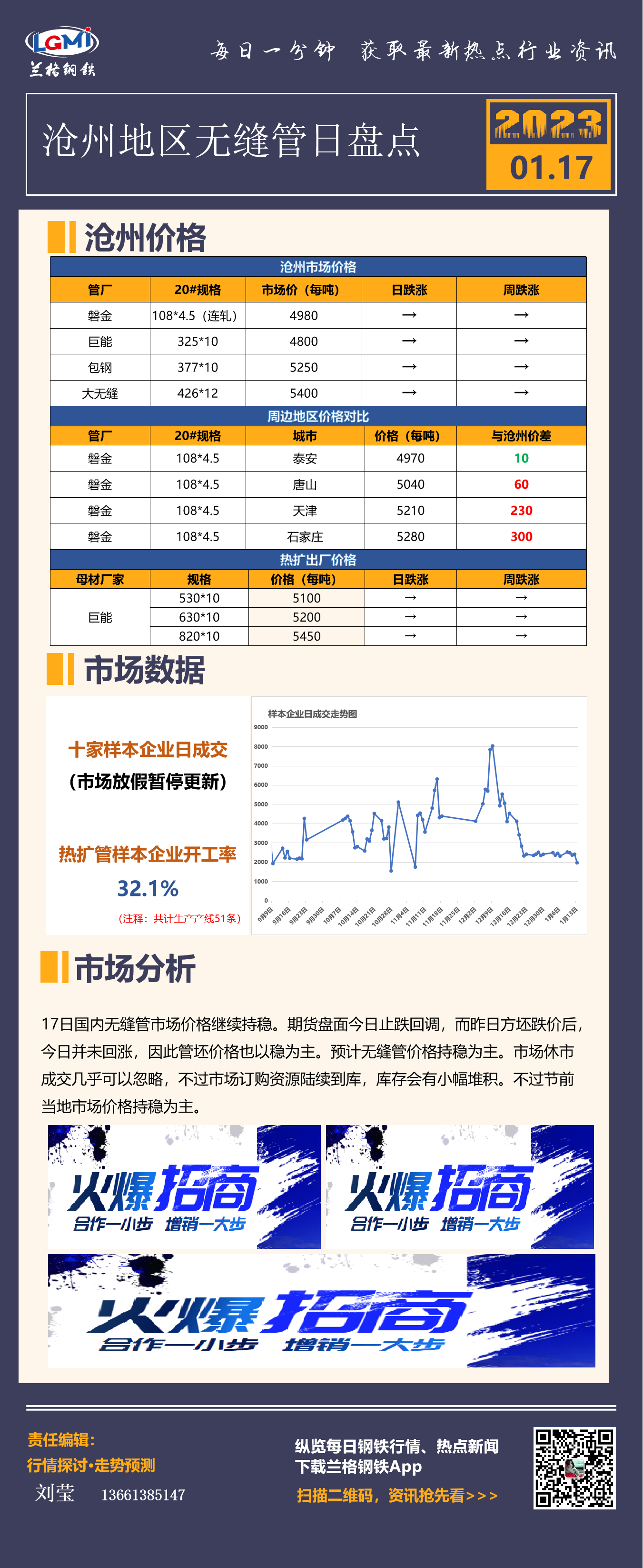 沧州无缝管日盘点:市场继续累库 不过休市情况下价格持稳