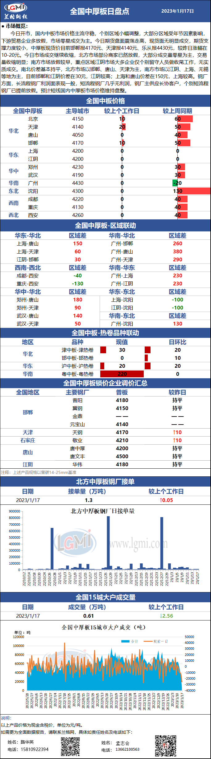 - 1月17日国内中厚板锁价企业调价汇总2023/1/17