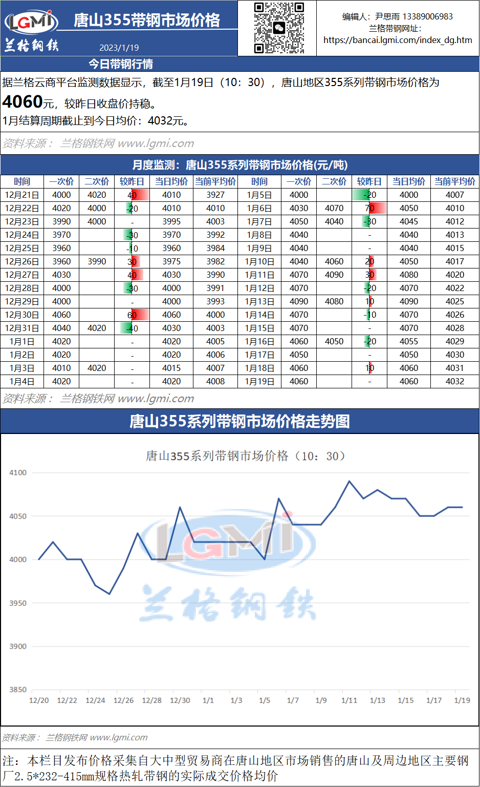 - 1月19日(10:30)唐山355系带钢市场价格2023/1/19