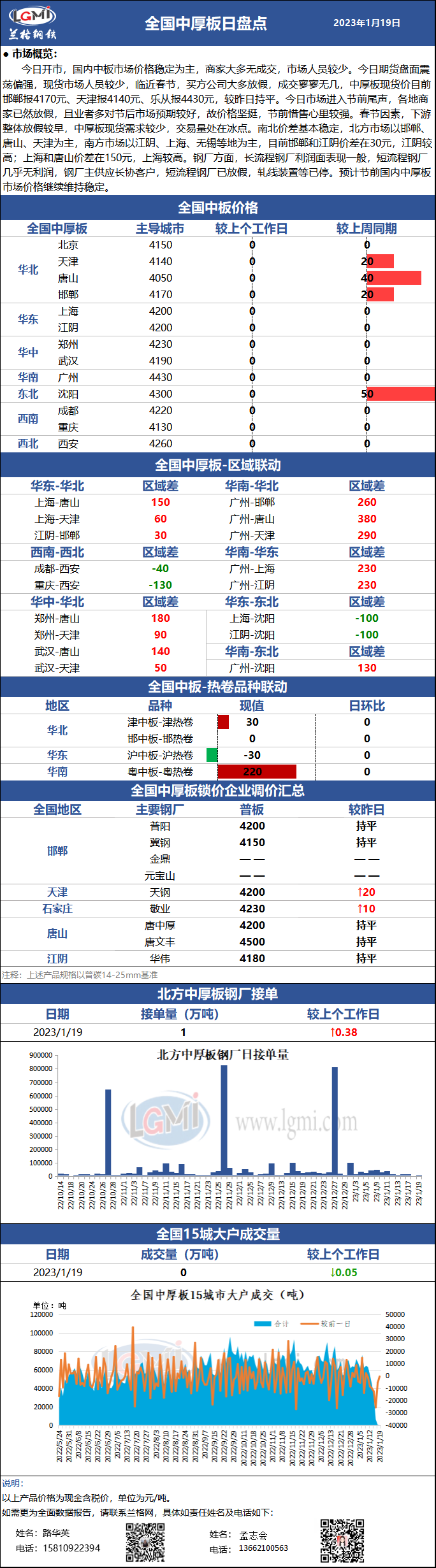 - 兰格中厚板日盘点:市场价格维稳 交易寥寥无几2023/1/19
