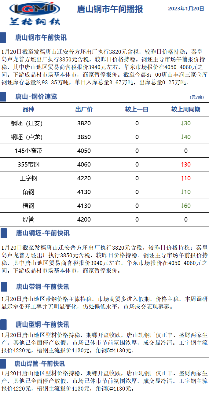 发表日期:2023/1/20 11:34:07 兰格钢铁