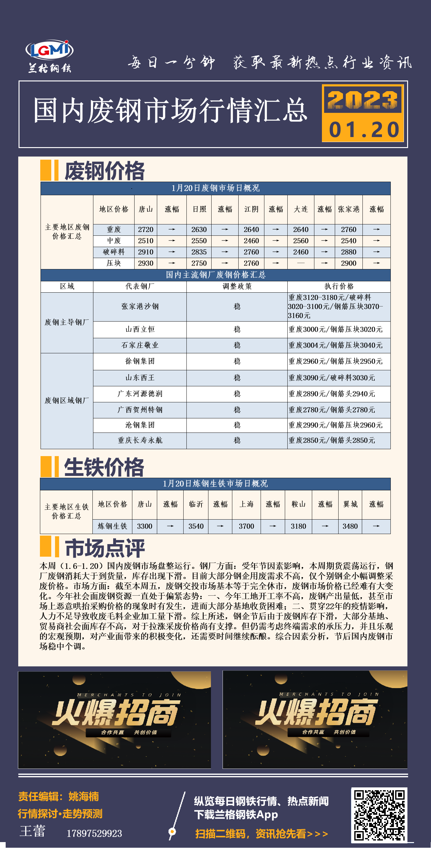 - 1月20日国内废钢市场行情汇总2023/1/20