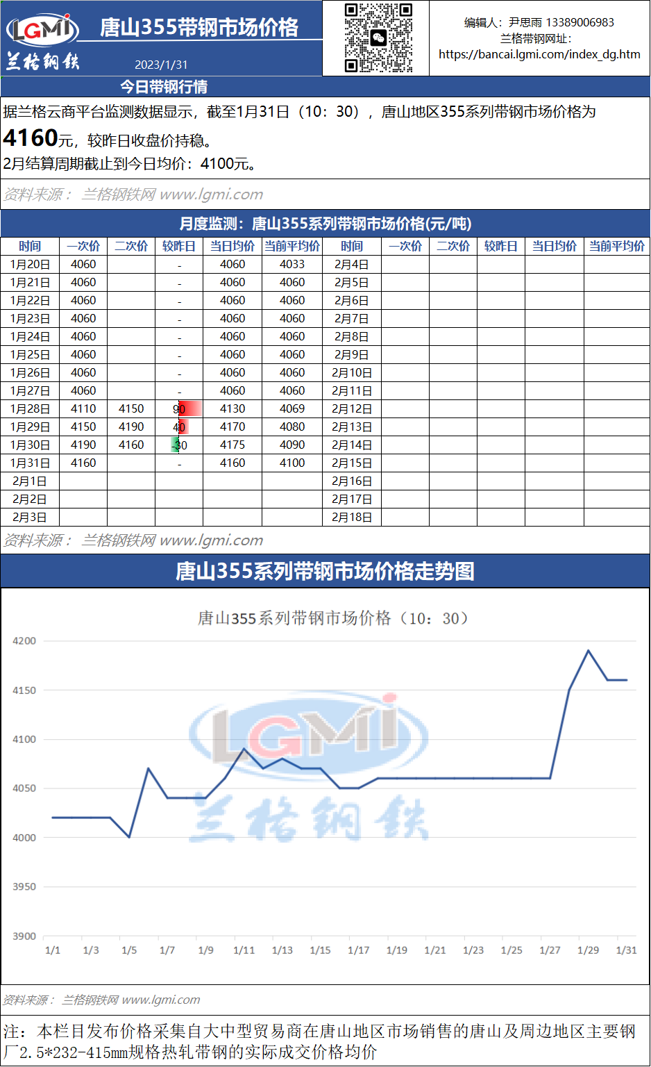 - 1月31日(10:30)唐山355系带钢市场价格2023/1/31