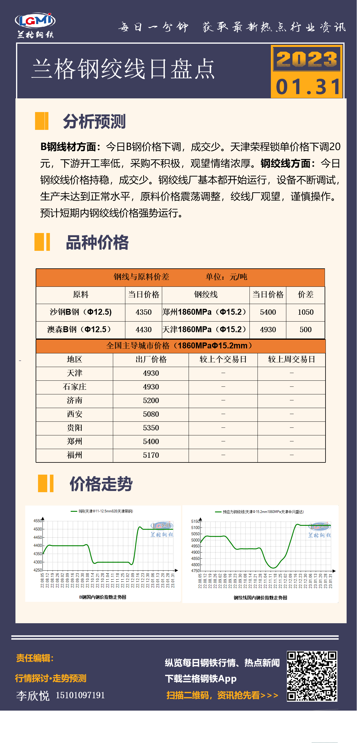 - 1月31日天津荣程钢B钢线材接单价格下调20元2023/1/31