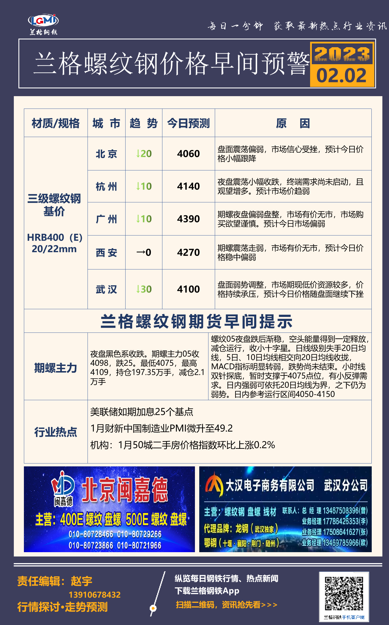 2月2日兰格螺纹钢价格早间预警