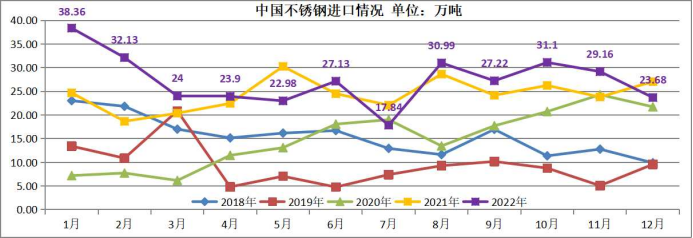 | 2022年中国大陆不锈钢进口情况(万吨) | |||