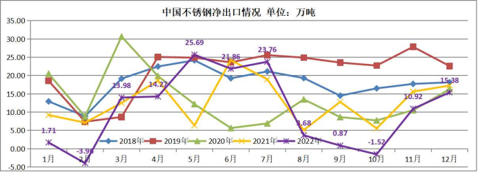 | 2022年中国大陆不锈钢出口情况(万吨) | |||
