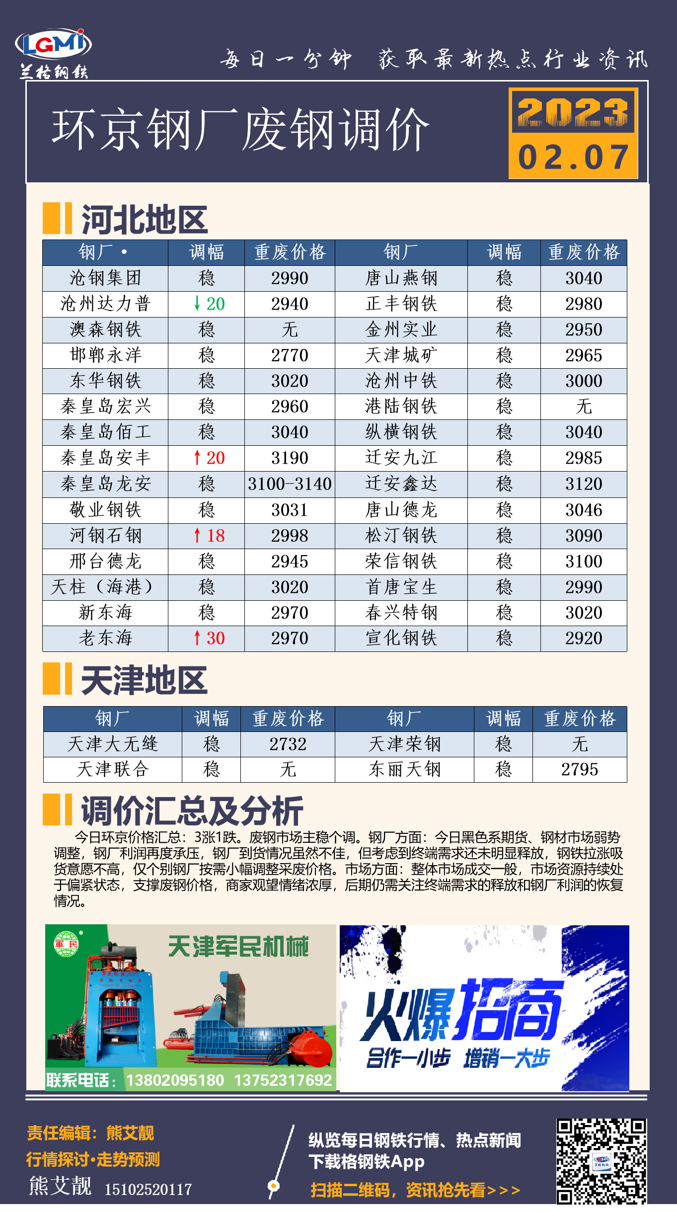 - 今日国内废钢市场主稳个调 明日偏强整理为主2023/2/7