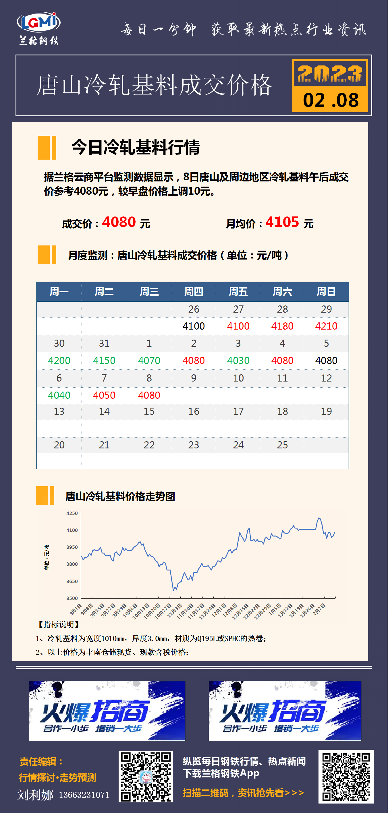 - 2月8日唐山津西钢铁带钢出厂价格涨30元2023/2/8