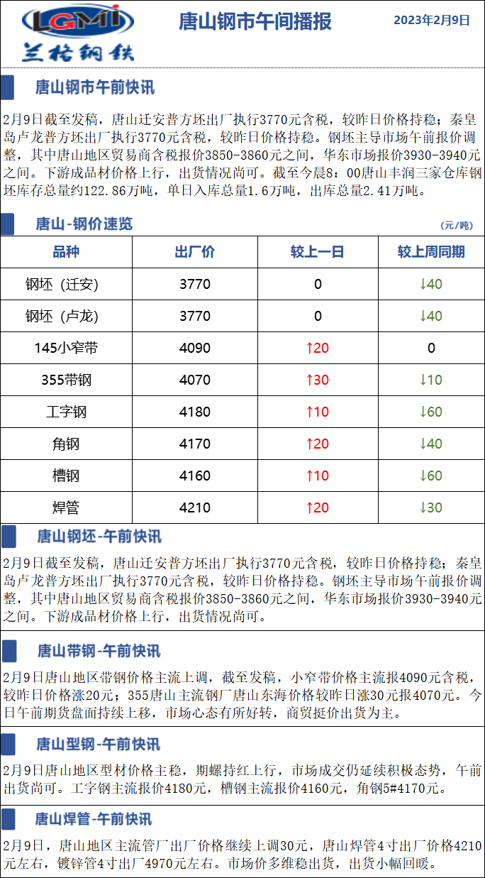 2月9日兰格唐山钢市午间播报