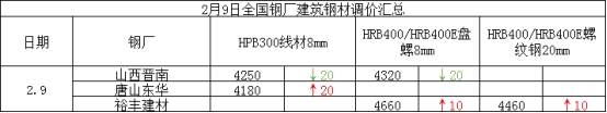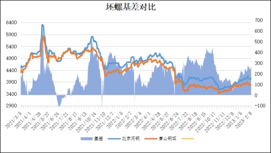 坯螺价差:以北京市场为例,2月9日河钢螺纹基价4050元与钢坯3790元,基差为260元,较上个交易日扩大20元。