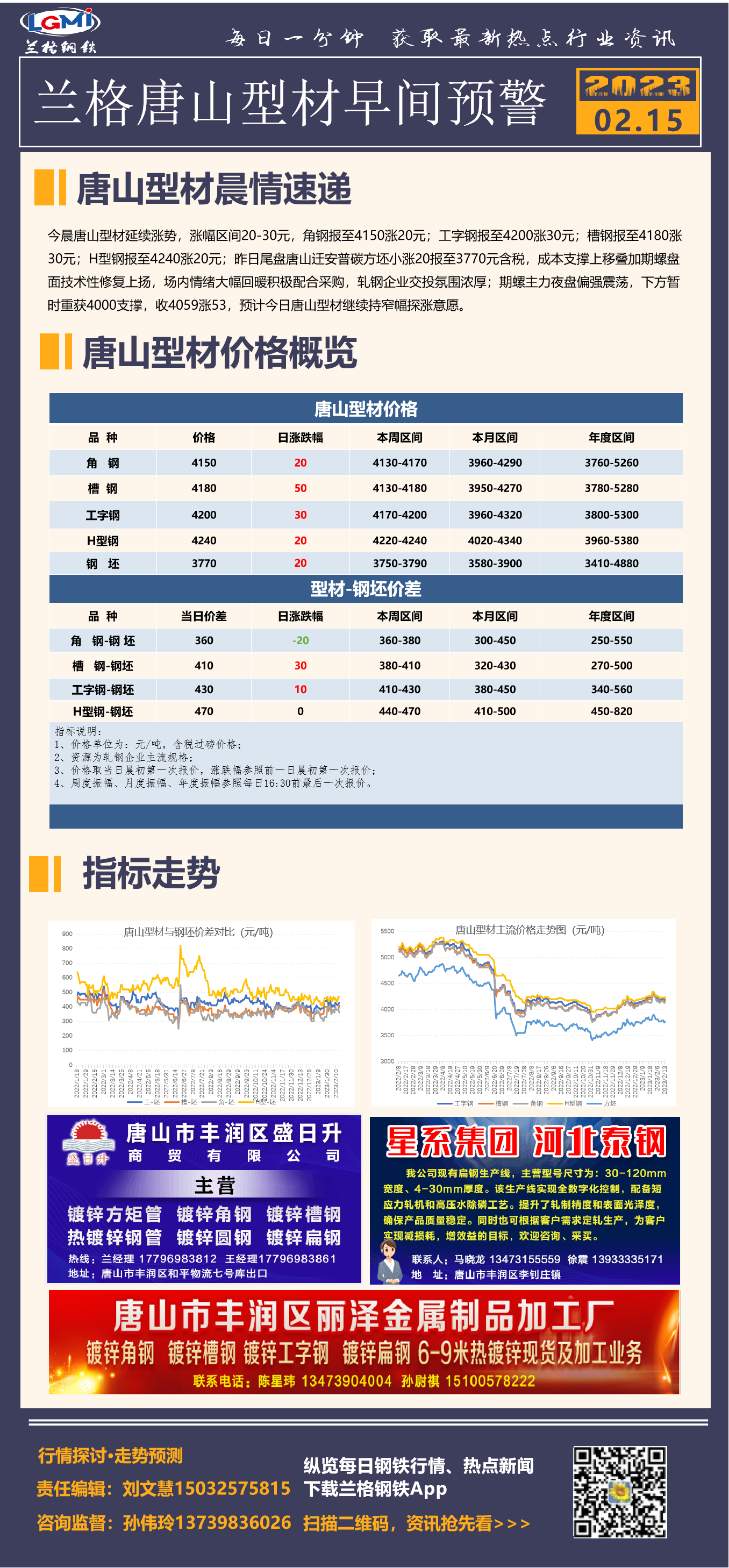 - 2月15日兰格唐山型材早间预警2023/2/15