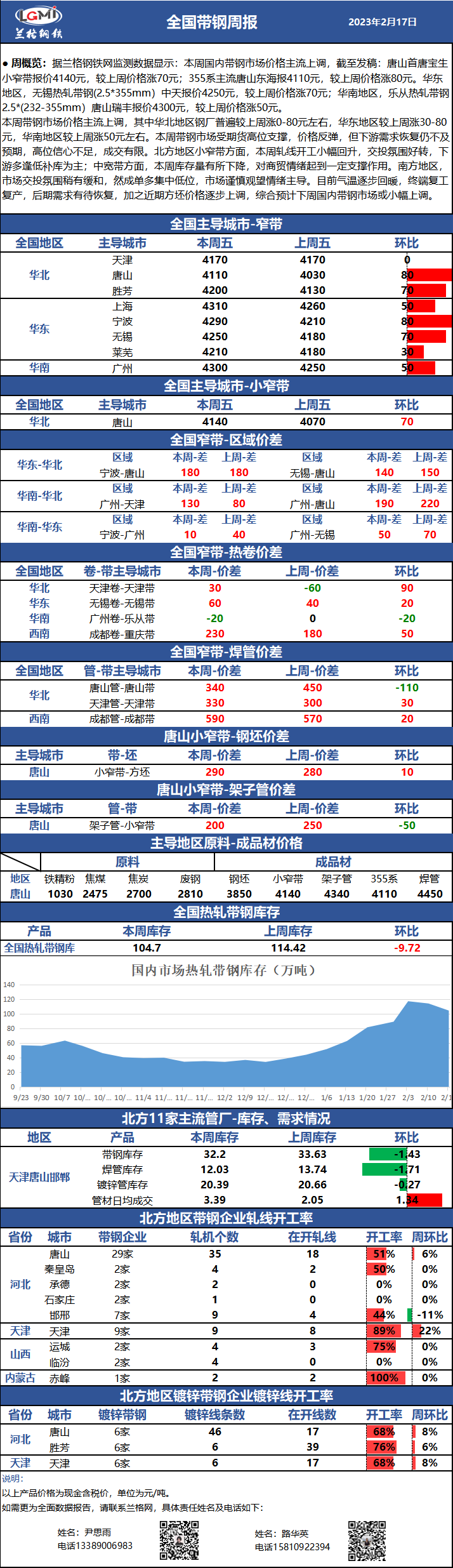 - 本周带钢价格上行 预计下周持续2023/2/17